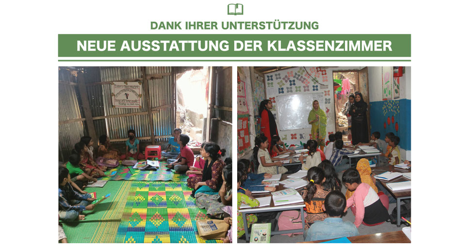 Innerhalb von wenigen Monaten haben sich unsere Klassenzimmer grundlegend verändert. Zum Beispiel im Foto links die Golap Grundschule im ehemaligen Zustand und rechts nach der Neugestaltung.